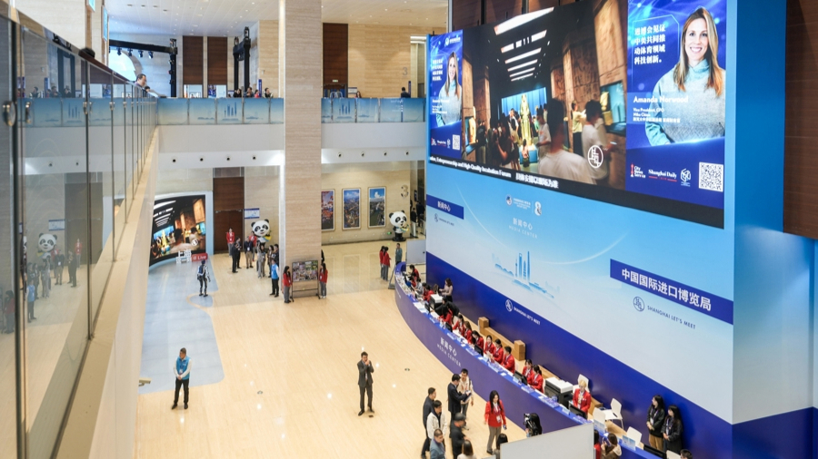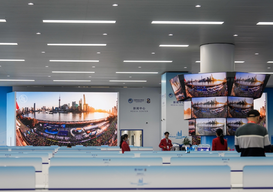 第八届进博会新闻中心今天正式对中外媒体记者开放 摄影 陈梦泽