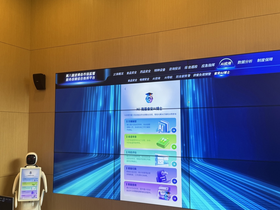 第八届进博会食品安全保障再次迎来“智慧升级”。据悉,上海市场监管部门自主研发的“食安AI博士”智能体已成功嵌入市场监管综合指挥平台,首次为进博会服务保障工作提供全流程智能化支持。